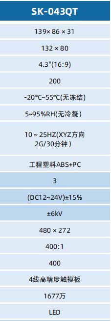 SK-043QT 顯控人機界面 顯控觸摸屏
